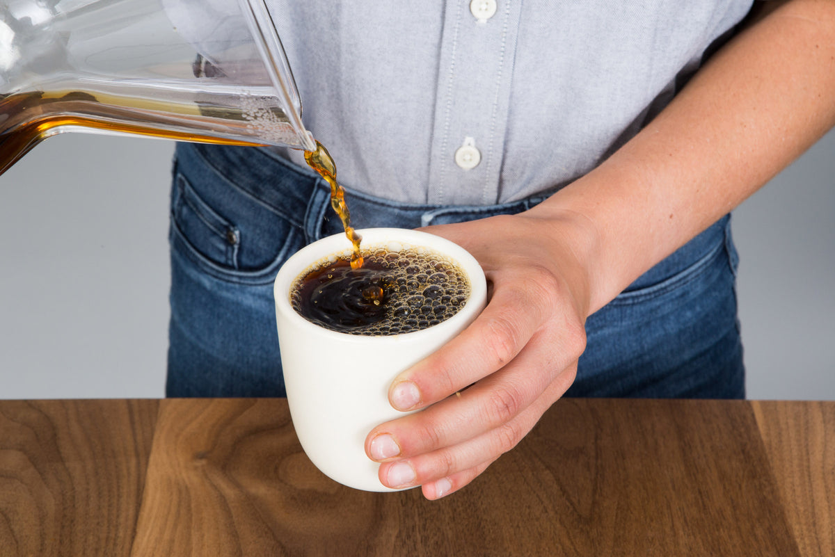 Once the water has passed through, pull the filter out of the Chemex and let it drain into the sink. Find your favorite mugs, and enjoy!
