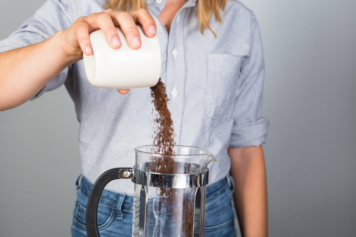 Warm up your empty French press by rinsing it with hot water. Press the plunger all the way down and swirl the water around for a few seconds. Remove the plunger, pour out the water. This helps to maintain temperature for the best brewing extraction.