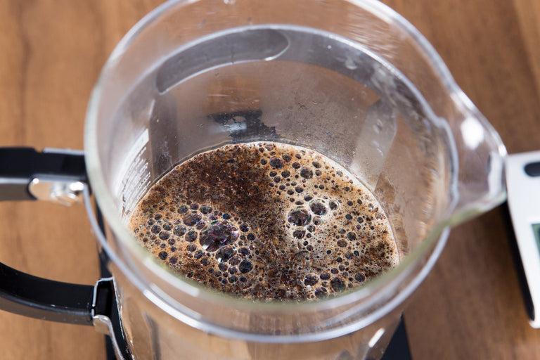 Start your timer, then let the coffee sit for about 30 seconds, allowing the coffee to bloom and release its trapped gasses.