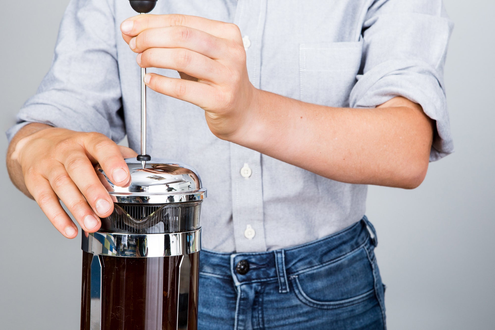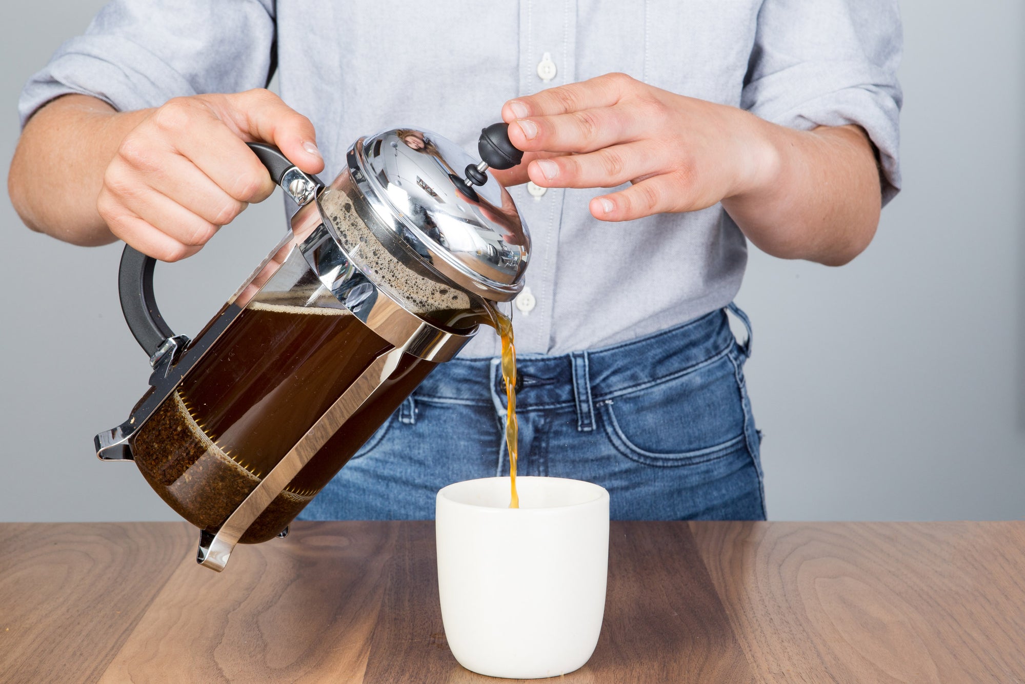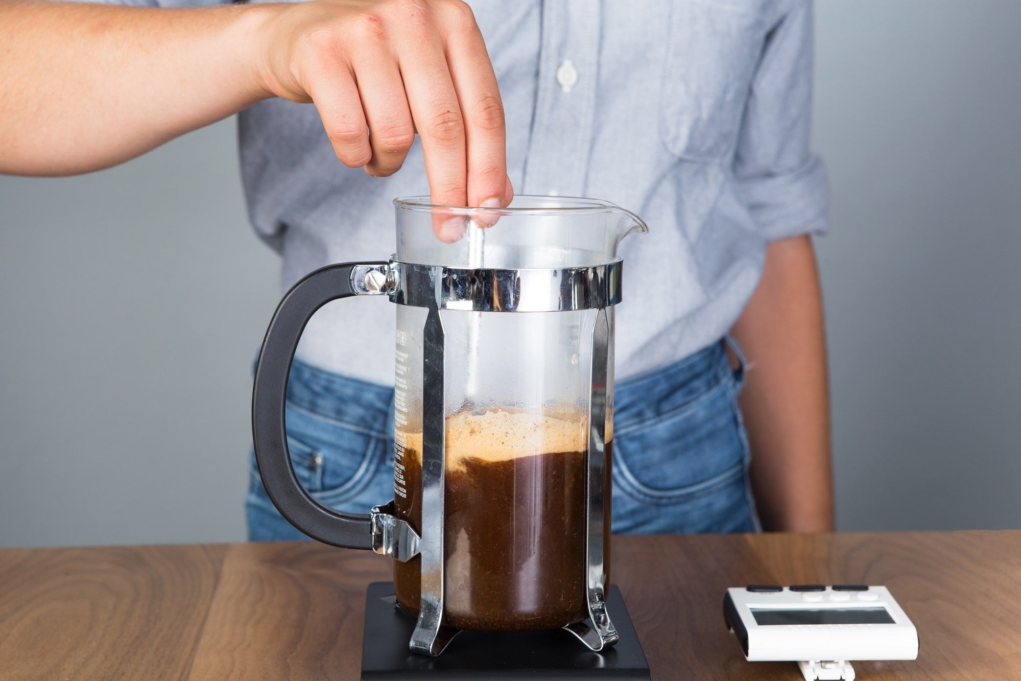 Finally! Now, slowly press the plunger in, separating the grounds from the brewed coffee. In order to avoid overextraction, pour the coffee out completely into a carafe or mugs. Pairs nicely with a flaky, buttery croissant. Voila!