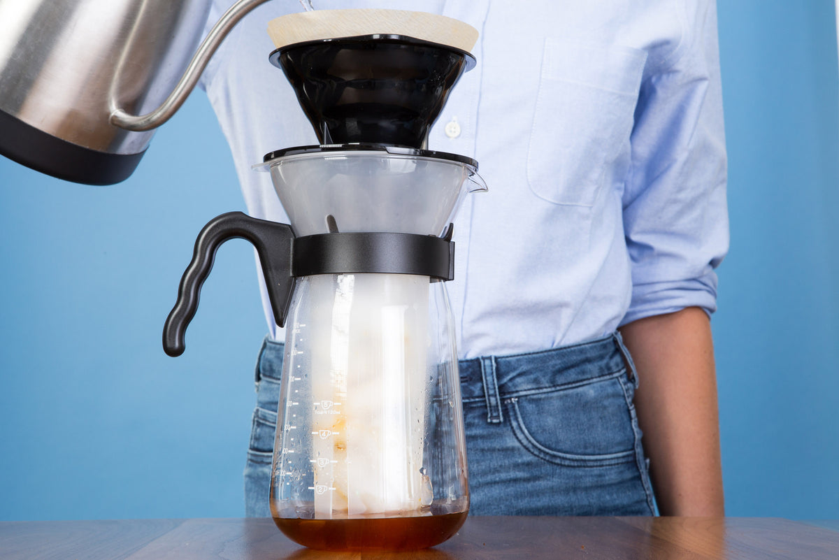 The Hario V60 Fretta Iced Coffee Maker comes in one size, but gives you flexibility in terms of yield between 2 and 4 cups. We use it to make 4 cups here.